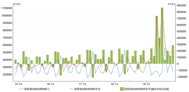 图 4 美国联邦政府财政收支统计(2015-2020)
