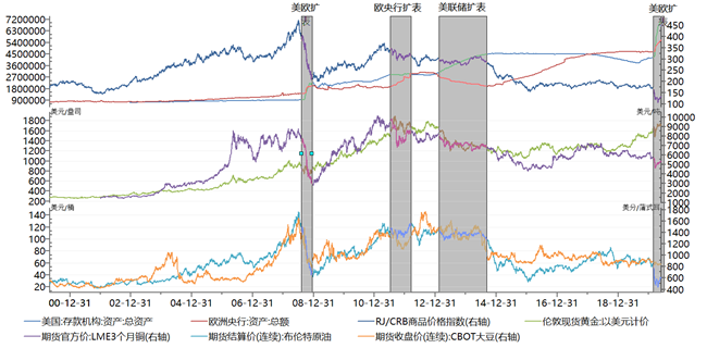 图 6 美欧扩表与大类资产走势分析(2000-2020)
