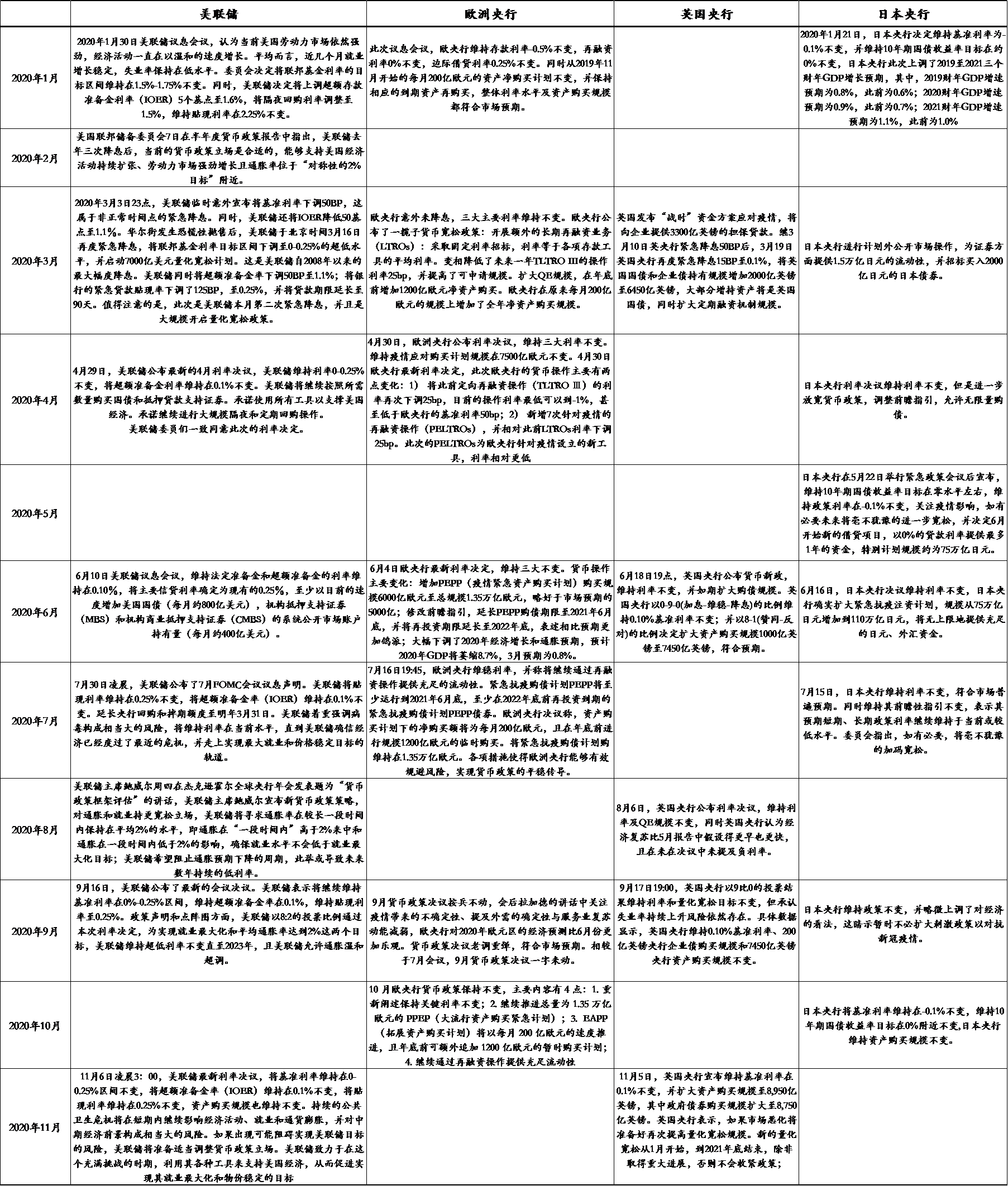 疫情冲击下,市场恐慌情绪引发全市场的抛售,金融市场和商品市场均出现大幅下跌,美元指数因为流动性危机而出现大幅上涨,从而加剧金融市场和商品市场的跌幅;严格的社交管控措施使得制造业和服务业均陷入停滞,经济和贸易活动陷入半停滞状态,全球经济陷入深度衰退中。面对金融和商品等全市场的普跌、经济活动的停滞,欧美日等主要央行吸取2008年金融危机的教训,迅速推出超宽松的货币政策以避免金融和商品市场出现更大的危机,避免流动性危机发展为金融危机,更是降低经济危机的程度。