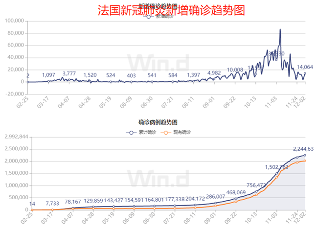 四季度来临,温度下降更有利于疫情的蔓延,已经放松社交管控措施的欧洲在三季度没有采取进一步的疫情防控措施,从而错过二次疫情防控的最佳期,10月初,欧洲二次疫情全面爆发,并且处于持续的恶化中,法国、德国、意大利、英国、荷兰等主要经济体疫情均全面恶化,特别是法国新增确诊人数最高时达到8万,欧洲新增确诊人数最高时达到近40万,疫情非常严重,各主要经济体则采取新一轮的社交管控措施以应对二次疫情的冲击,持续复苏的经济则再度恶化,当前,欧洲二次疫情虽然顶峰已过,但是依然较为严重。