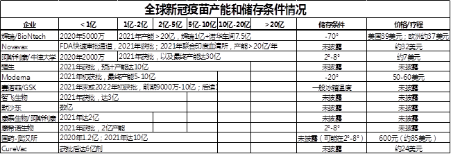 世卫组织数据显示,截至11月初,全球共有45支疫苗处于临床试验阶段,其中10支处于第三阶段临床试验;中国已于7月22日正式启动新冠疫苗的紧急使用。国药集团目前共计接种了约6万名受试者,到2020年底,我国疫苗的产能预计能达到6.1亿剂。海外疫苗方面,Moderna已在10月获得了欧洲EMA的书面确认,证明该疫苗符合提交欧盟市场销售许可申请的资格,预计将在12月份向美国FDA提交其候选疫苗的紧急使用权(EUA)申请。Moderna计划在今年年底前生产 2000 万剂疫苗,并在 2021年生产5-10 亿剂疫苗;辉瑞和BioNTech合作研发的新冠疫苗预计在12月份获得紧急使用权,如果申请成功,该疫苗可能在今年年底在美国上市,辉瑞已与美国政府签署协定,为后者提供1亿剂疫苗;辉瑞和BioNTech与欧盟协议提供2亿剂疫苗。2021年底,辉瑞和BioNTech将有能力在世界范围内生产13亿剂疫苗。阿斯利康也已重启疫苗研发过程,此前阿斯利康已签署协议,为美国、英国等实体提供7亿剂疫苗,为欧洲四国提供4亿剂疫苗,为印度等中低收入国家提供10亿剂疫苗。