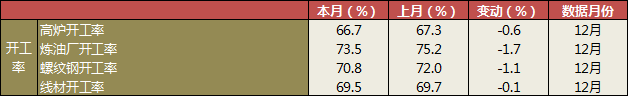 从中上游开工率方面看,11月高炉开工率继续回落,螺纹钢开工率稍有上升,但线材开工率下降。炼油厂开工率也有所回落。从边际上看,高炉开工率基本符合季节性,螺纹钢和线材超季节性,三者均低于5年均值。炼油厂开工率则弱于季节性水平。目前数据显示,12月黑色产业链开工依然较高。