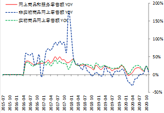 社消总额表现明显超过季节性。其中商品零售和餐饮消费均超季节性水平,尤其是后者表现极强,与近几年情况一致。餐饮消费同比增速回落主要是高基数导致。这一变动仍符合我们对消费持续复苏,尤其是服务消费加速修复的基本判断。但网上消费由于去年同期基数较高,同比增速回落,且线上非实物消费出现弱于季节性的情况。
