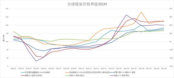 9月以来,全球能源短缺问题日益凸显。中国从中秋节起采取错峰用电,印度多个发电厂的煤炭库存不足两天,黎巴嫩停电,欧盟甚至与俄罗斯上演“能源外交战”。能源稀缺导致价格飙升,9月美国、欧盟、加拿大、印度能源CPI分别同比上涨24.8%、115.3%、20.09%、13.6%,9月印尼HBA和纽卡斯尔/肯布拉港FOB价格分别达到150美元/吨和188.1美元/吨,同比提升203.6%和261.7%。今年全球有可能会迎来“最寒冷、最昂贵”的冬天。此次能源危机主要有以下三方面原因: