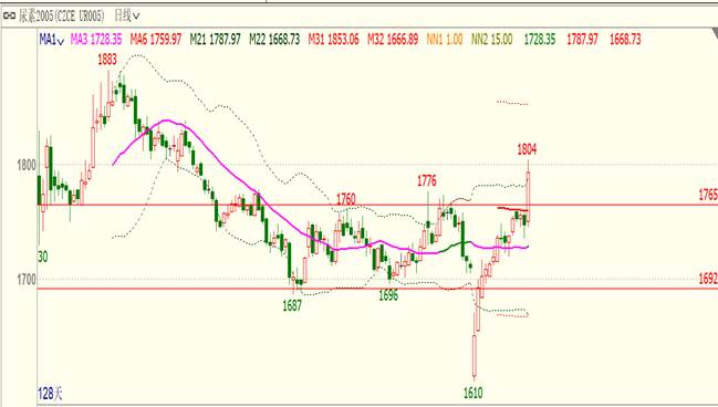 春节之后尿素05合约低开高走,在日线七连阳之后进入窄幅的区间震荡,周五尿素05合约放量增仓上涨,一举突破前期重要的压力位1765元/吨,创出节后的反弹新高,尿素已由前期的下跌趋势明显的转为上涨趋势,尿素的基本面具体发生哪些变化,其背后的上涨逻辑是什么呢?