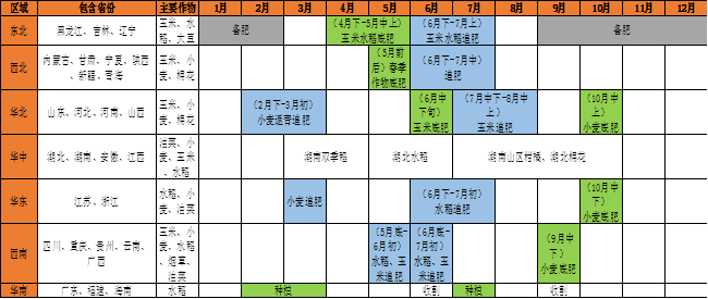 每年的1-2月份是我国农业用肥的淡季,而进入3月份农需用肥才真正开始增加。3月份小麦主产区进入春小麦返青用肥小旺季,3月下旬高氮复合肥生产开始进入生产旺季,最晚至5月底,南方局部地区有水稻用肥。6-7月玉米等大田作物进入全年最大的追肥旺季,自东北开始,基本在7月底全面结束。5-7月是全年尿素需求量最大的三个月份,每年这段时间尿素农需用肥占尿素全年农需用肥的40%。8月份尿素需求转淡,9-10月份,主要集中于安徽、河南等局部地区秋小麦备肥及用肥,其他地区用肥量偏弱。10月中旬之后,农需用肥基本结束。