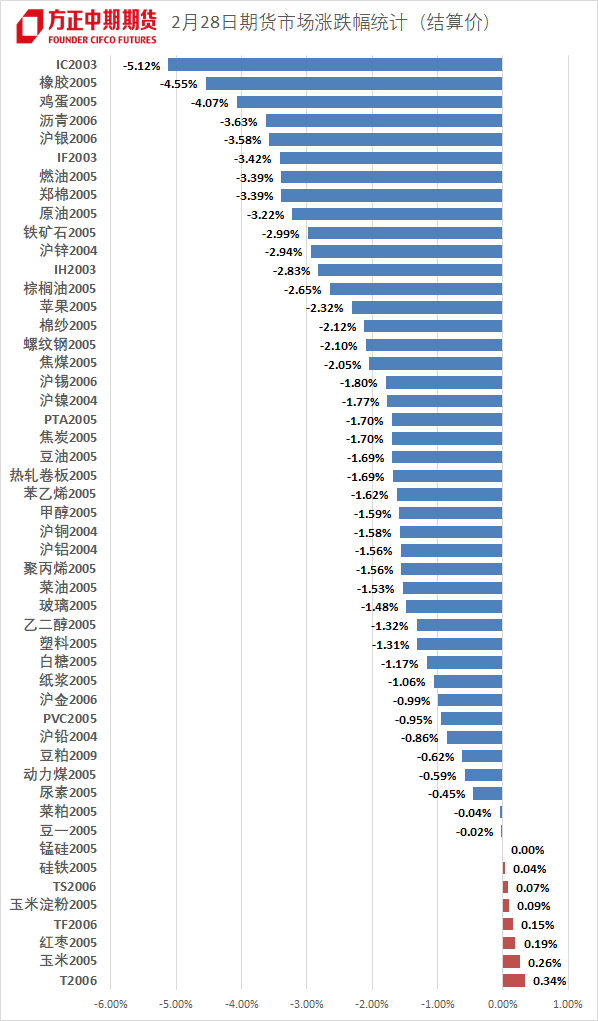 图:2月28日中国期货市场涨跌幅度统计