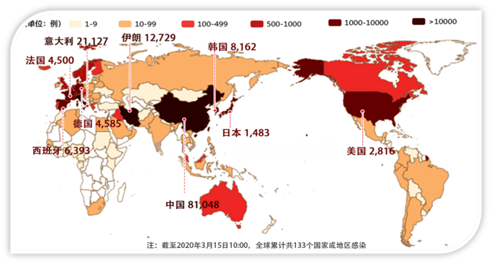 海外疫情持续升温,截至北京时间3月15日12时,除中国外,140多个国家和地区累计确诊74225例新冠肺炎,中国以外10个国家确诊过千;中国以外死亡病例较前一日增加424例,达到2199例。据美国国家及地方卫生机构、政府以及美国疾病控制与预防中心(CDC)数据显示,美国新冠肺炎确诊病例累计2816例,死亡病例累计58例。