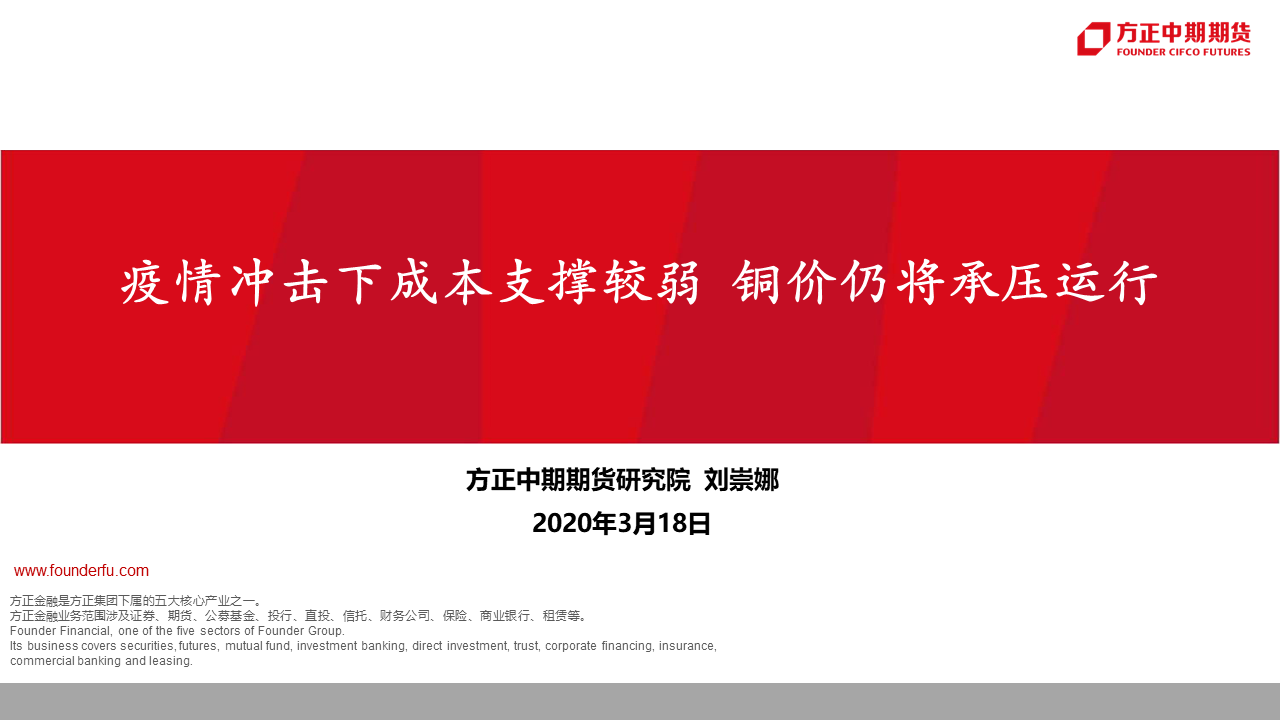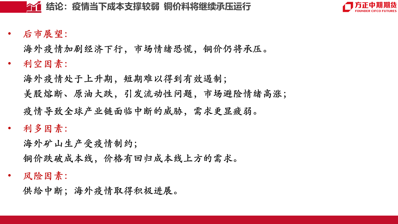 疫情冲击下成本支撑较弱 铜价仍将承压运行