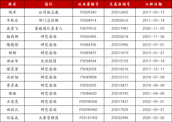 二、方正中期期货交易咨询部从业人员情况